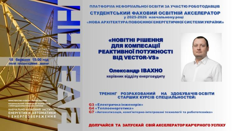 У межах цієї ініціативи відбувся черговий фаховий захід – тренінг «Новітні рішення для компенсації реактивної потужності від VECTOR-VS», який об’єднав здобувачів освіти старших курсів технічних спеціальностей.