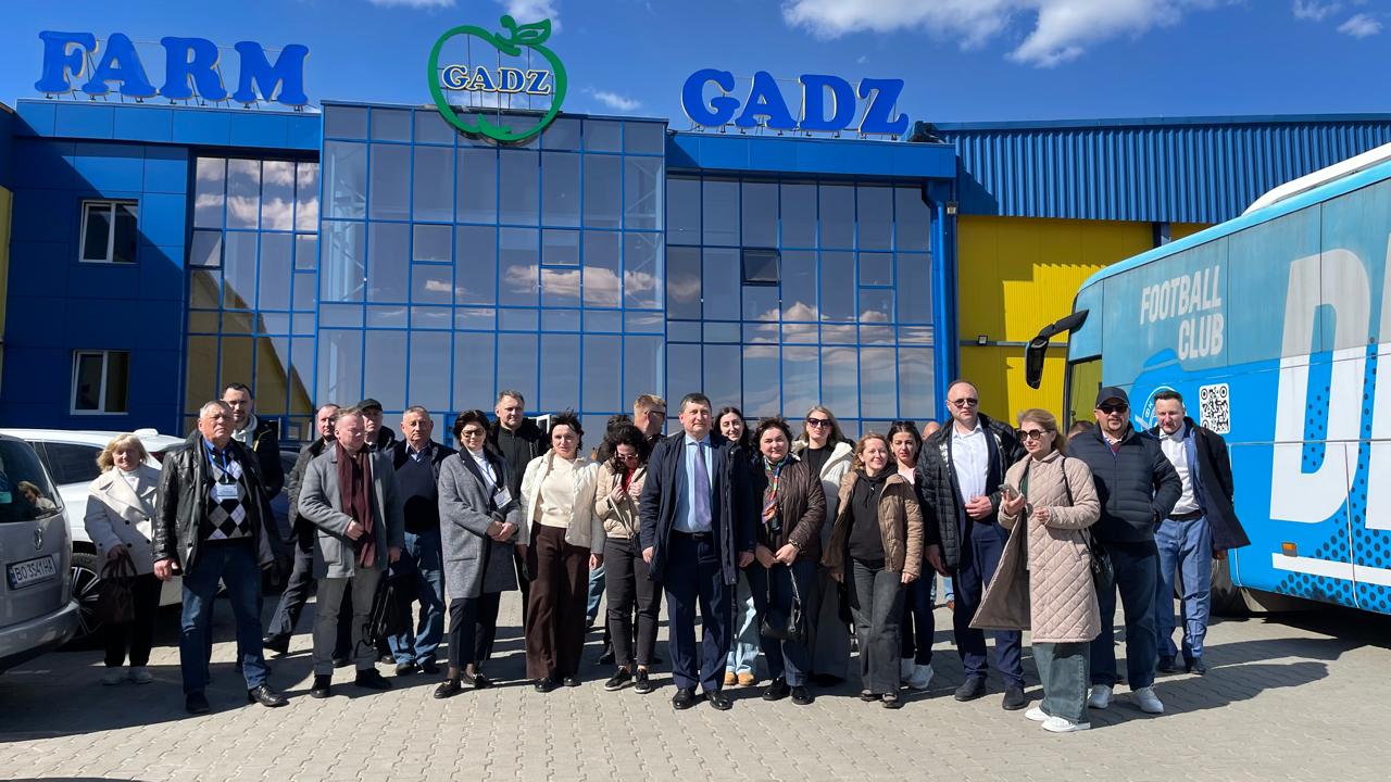 В доповнення інтенсивної пленарної дискусії, для учасників воркшопу було організовано виїзний навчально-практичний візит до Фермерського господарства «ГАДЗ», яке є одним із провідних аграрних підприємств України, що спеціалізується на промисловому вирощуванні плодово-ягідної продукції, зокрема яблук, груш і слив. Зазначене господарство виступає показовим прикладом ефективного поєднання сучасних інтенсивних технологій садівництва, інноваційних підходів до зберігання та переробки продукції, а також впровадження елементів сталого та кліматично-орієнтованого виробництва. У межах візиту учасники мали змогу ознайомитися з практичними аспектами організації виробничих процесів, інфраструктурними рішеннями та управлінськими підходами, що забезпечують високу конкурентоспроможність підприємства на внутрішньому й зовнішньому ринках. Висловлюємо щиру вдячність керівництву фермерського господарства, зокрема його Голові — Петру ГАДЗУ, за гостинний прийом, відкритість до професійного діалогу та ґрунтовне представлення практичного досвіду функціонування сучасного високотехнологічного агробізнесу (https://fg-gadz.com.ua/).