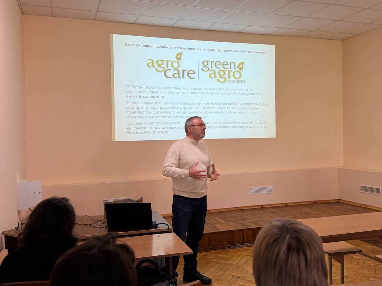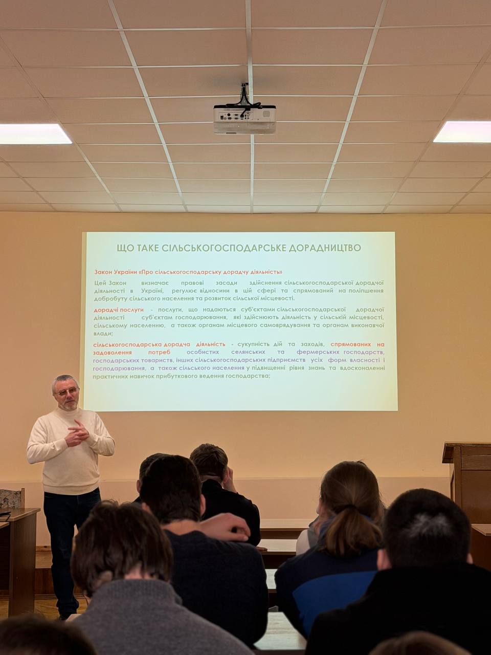Микола Іванович детально роз’яснив, як працює система консультування в Україні. Студенти дізналися, що завдання сучасного агронома-дорадника полягає не лише в технологічному супроводі, а й у впровадженні наукових досягнень у реальне виробництво.
