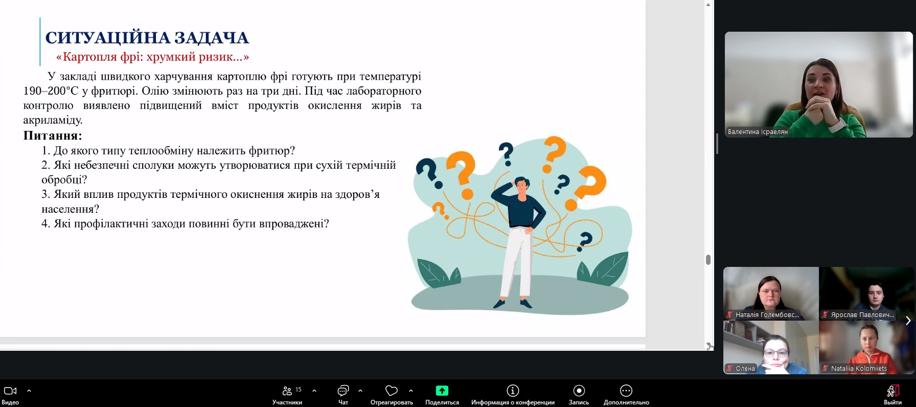 Особливу увагу під час заняття було приділено розв’язанню ситуаційних задач, що дозволило студентам застосувати теоретичні знання до аналізу виробничих умов, оцінки технологічних параметрів і прийняття обґрунтованих рішень у реальних життєвих ситуаціях. Активна участь здобувачів освіти сприяла формуванню професійних компетентностей та розвитку аналітичного мислення.