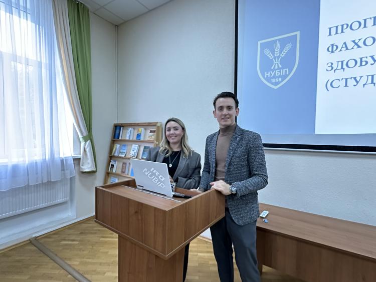 08 жовтня для студентів гуманітарно-педагогічного факультету відбулася інформаційна зустріч з представниками міжнародного відділу НУБіП України, під час якої здобувачі вищої освіти дізналися більше про можливості участі в міжнародних програмах мобільності та студентських обмінах (ERASMUS+ KA1), програмах практик, подвійних дипломів і перспективах навчання за кордоном.