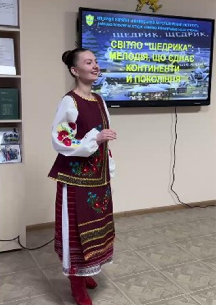 Тему продовжила завідуюча лабораторії національно-патріотичного виховання та міжнародних зв’язків Тетяна ШАХРАЙ, наголосивши, що «Щедрик» — це значно більше, ніж різдвяна пісня. Це музичний код України, який на початку ХХ століття став мовою національної гідності та потужним інструментом культурної дипломатії. У час, коли молода Українська Народна Республіка боролася за своє право на існування, саме культура заговорила до світу переконливіше, ніж будь-які політичні декларації, доносячи правду про Україну через музику, мистецтво й духовні цінності.