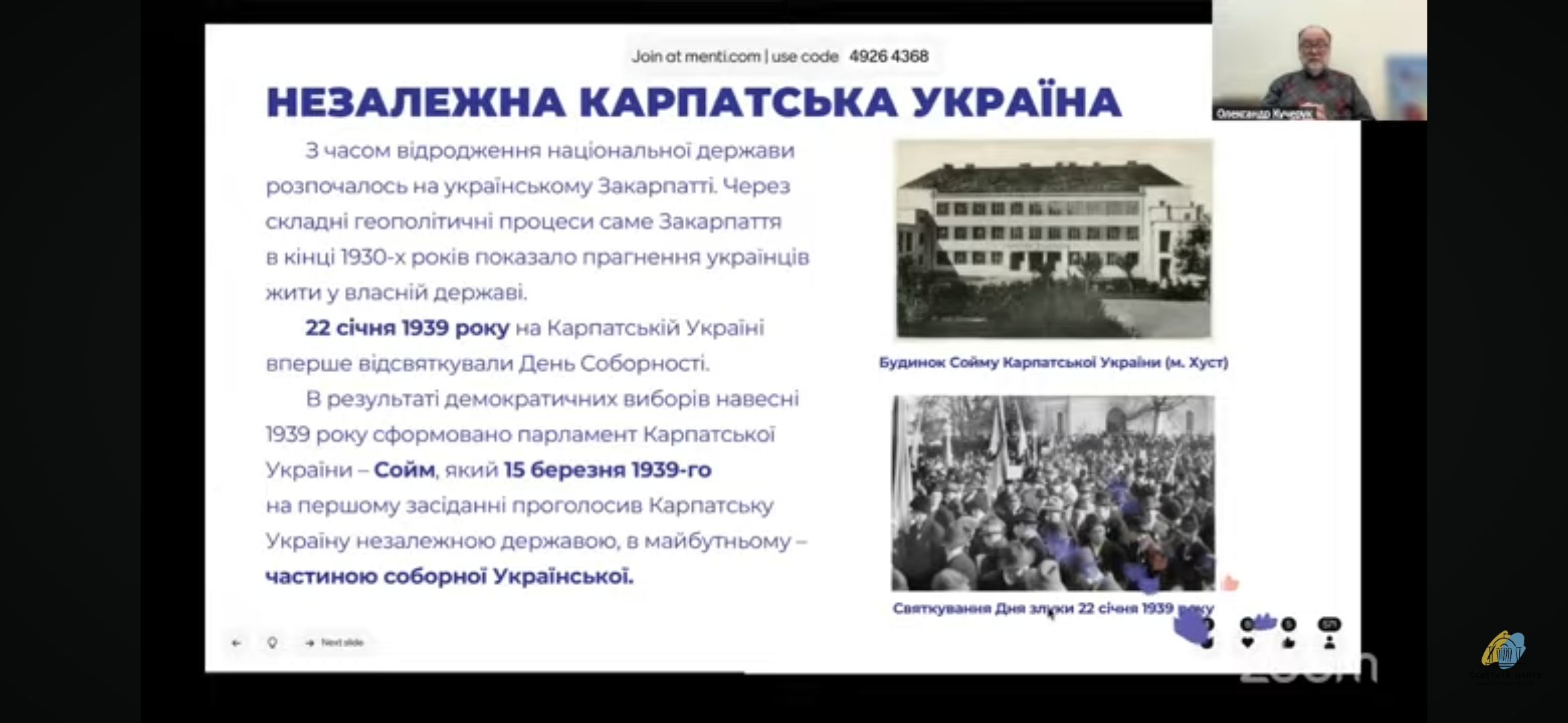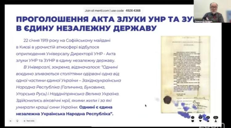 Цьогоріч здобувачі ОС магістр спеціальности С 4 Психологія групи Пс-25001 м гуманітарно-педагогічного факультету відзначали свято, долучившись до широкого загалу українців, які прагнули поновити спогади, ще раз пережити почуття причетності до величного. Таку нагоду вкотре забезпечив Освітній центр Верховної Ради України, який запросив здобувачів різних рівнів освіти на спеціальний онлайн-урок до Дня Соборности України.