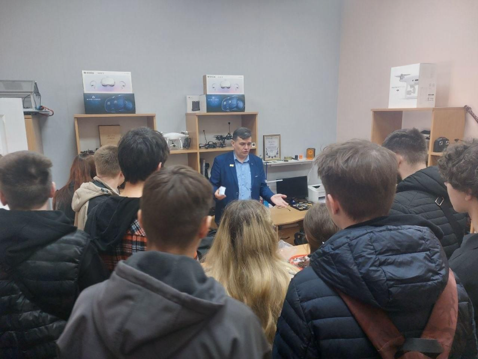 Дмитро Касаткін, завідувач кафедри комп’ютерних систем, мереж та кібербезпеки, провів детальну екскурсію лабораторіями факультету з елементами вікторини, в продовж якої кожен мав нагоду отримати подарунки з сувенірною продукцією факультету, що була надрукована в лабораторії 3-d друку та моделювання.