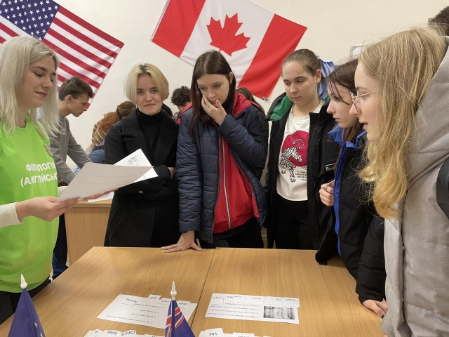 День відкритих дверей на кафедрі романо-германських мов і перекладу перетворили на свято - свято знайомства, спілкування, свято пізнання! Учнів гостинно зустрічали науково-педагогічні працівники кафедр романо-германських мов і перекладу і англійської мови для технічних та агробіологічних спеціальностей, а також студенти спеціальності «Філологія (перша мова – англійська)». Відвідавши означену локацію, майбутні абітурієнти мали змогу ознайомитися з перевагами навчання за освітньо-професійною програмою «Англійська мова та друга іноземна», отримати вичерпні відповіді на питання щодо особливостей освітнього процесу, переваг професії перекладача, перспектив працевлаштування, контингенту студентів, міжнародних програм мобільності. Школярам було запропоновано продемонструвати свої знання з англійської мови, розгадуючи різноманітні кросворди та квести і заодно дізнаючись цікаві факти про мову, переклади та перекладачів. Особливе захоплення викликав квест «Вгадай ідіому», що передбачав складання англійською мовою речень зі слів та добирання до них українських відповідників, запропоновано кросворди. Ідіоми - це саме ті конструкції, які прикрашають будь-яку мову, роблять її яскравою і неповторною, а головне – заплутаною і незрозумілою для іноземців, які намагаються її вивчити. Не менш захопливим було завдання, спрямоване на пошук відповідей на питання, що стосуються Великобританії. Крім того, учасники творчої гри повинні були розмістити країни так само, як на географічній карті Сполученого Королівство Великої Британії і Північної Ірландії.