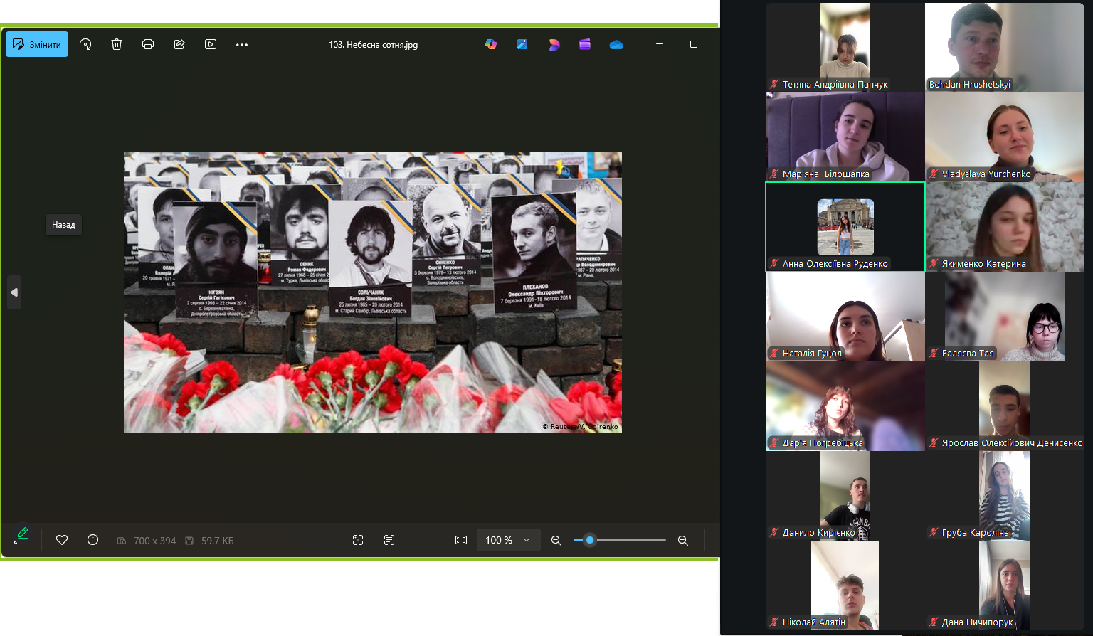 На кафедрі міжнародних відносин і суспільних наук Національного університет біоресурсів і природокористування України відбулися заходи з нагоди Дня Героїв Небесної Сотні, присвячені пам’яті людей, які віддали життя за свободу, гідність та демократичне майбутнє України. Студенти та викладачі університету активно долучилися до освітніх і тематичних подій, що поєднували історичну пам’ять із сучасними викликами міжнародних відносин та європейської інтеграції України.