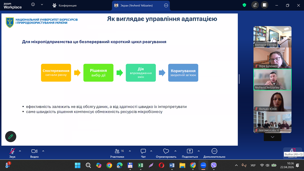 Науково-педагогічні працівники та здобувачі вищої освіти ступеня доктора філософії кафедри економічної теорії Віра БУТЕНКО. Юрій ВЛАСЕНКО, Євген ЄЛІЗАР’ЄВ активно долучилася до роботи VI Всеукраїнської науково-практичної конференції здобувачів вищої освіти та молодих учених «Актуальні питання теорії та практики менеджменту в умовах сучасних викликів», яка проходила на факультеті аграрного менеджменту 22 квітня 2026 року.