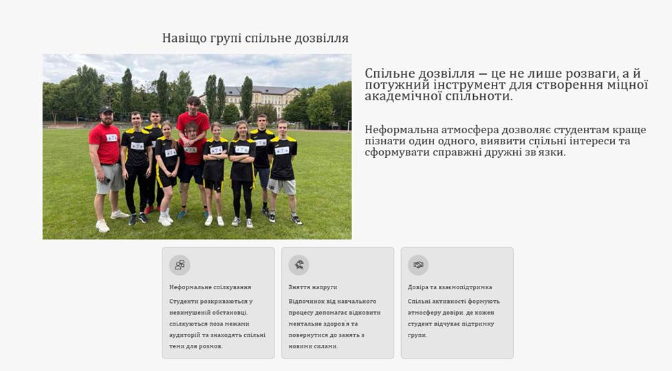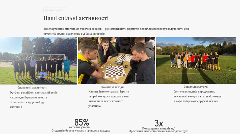 Богдан ШИНКАРЮК, голова спортивного сектору та студент групи ІЕС-23001б, продемонстрував, як організація студентського дозвілля, зокрема спортивних активностей, сприяє згуртуванню академічної групи та формуванню командного духу.