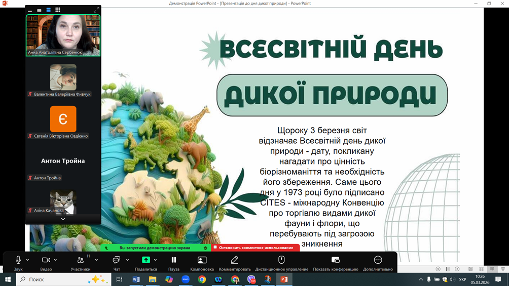 Тематичний захід до Всесвітнього дня дикої природи проведений студентами наукового гуртка «Екосвіт»