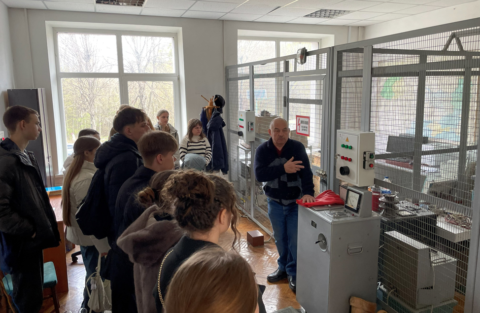 Гостям було представлено навчально-наукові лабораторії кафедри електротехніки, електромеханіки та електротехнологій, зокрема: «Вимірювання, випробування та діагностування енергообладнання», «Мехатроніки та моделювання електротехнологічних процесів і систем», «Електричного приводу», а також «Освітлення та опромінення». Презентацію провели завідувач кафедри Олександр ОКУШКО, гарант освітньої програми Олександр СИНЯВСЬКИЙ, доцент Віталій НАЛИВАЙКО та асистент Михайло СПОДОБА, які ознайомили учасників з особливостями підготовки майбутніх електроінженерів, можливостями практичного навчання та сучасною матеріально-технічною базою.
