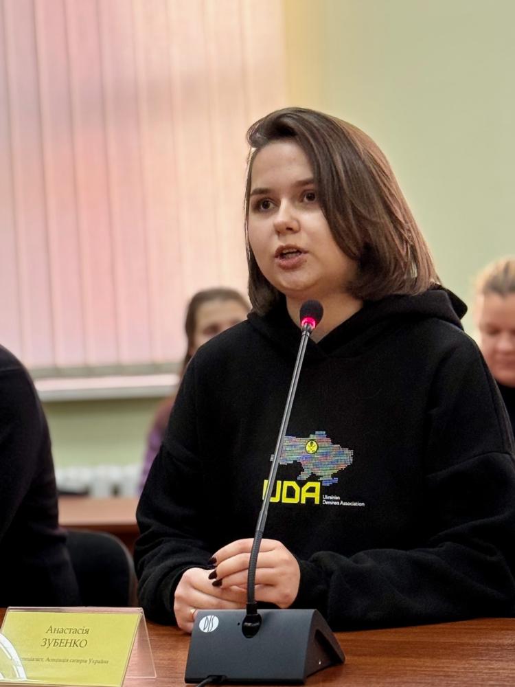 Потому учасники перейшли до панельних доповідей. Особливий акцент семінару було зроблено на використанні ГІС у гуманітарному розмінуванні. ГІС-спеціаліст Асоціації саперів України Анастасія ЗУБЕНКО у доповіді «ГІС системи в гуманітарному розмінуванні» продемонструвала застосування цифрових технологій для картографування небезпечних територій, обміну просторовими даними та оперативного оновлення польової інформації.