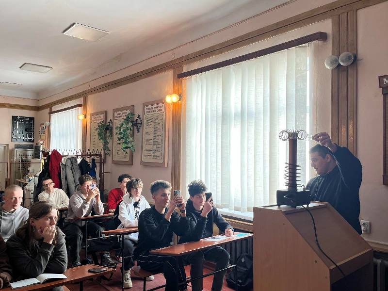 Досліди з котушкою Тесли стали не просто ефектним шоу з «ручними блискавками», а справжньою демонстрацією фундаментальних законів електродинаміки. Завдяки потужному високочастотному електромагнітному полю, яке створює пристрій, студенти змогли наочно спостерігати явища, що зазвичай залишаються прихованими: безпровідне свічення ламп; виникнення стримерів та іскрових розрядів; електромагнітний резонанс; скін-ефект та іонізацію повітря; відтворення звуку через електричний розряд («музика блискавок»). Заняття мало не лише навчальний, а й потужний мотиваційний характер. Студенти другого курсу побачили реальний результат навчання — те, як теоретичні знання трансформуються у конкретні технічні проєкти. Така форма роботи сприяє розвитку професійних компетентностей, стимулює інтерес до технічної творчості та зміцнює зв’язок між різними етапами підготовки фахівців спеціальності 141 Електроенергетика, електротехніка та електромеханіка.