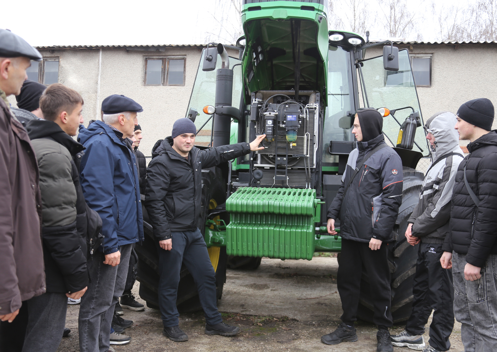 Здобувачі дізналися про особливості діагностики сучасних тракторів та алгоритм технічного обслуговування після капітального ремонту. Олександр детально розповів про контрольні точки огляду техніки, методику перевірки гідравлічної системи, принципи роботи електронних систем управління та нюанси налаштування обладнання John Deere.