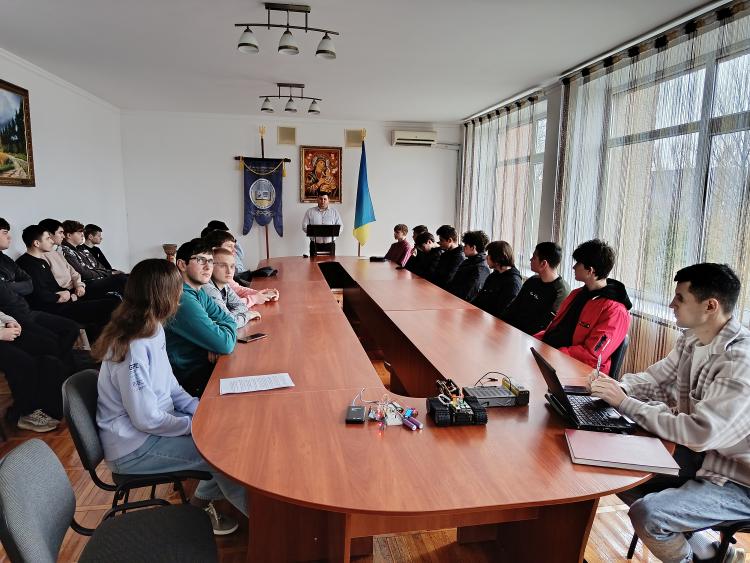 Студент 11 групи Вадим НАГІРНИЙ виступив із доповіддю «Створення системи контролю пожежної безпеки на базі Arduino з моделюванням у Tinkercad». Керівник — Михайло ПРОНЬ.