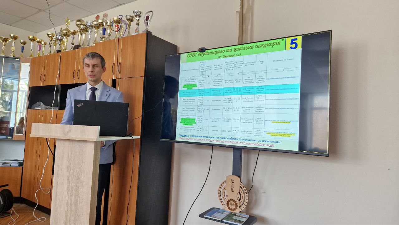 Разом із освітніми програмами, які забезпечуються іншими кафедрами факультету, у ході засідання було детально розглянуто освітні програми кафедри будівництва за спеціальністю G19 «Будівництво та цивільна інженерія», а саме: