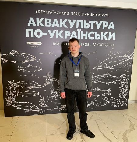 Разом з тим, форум відвідали і студенти факультету тваринництва та водних біоресурсів. Зокрема, Назар СТРІЛЕЦЬКИЙ, студент 3 курсу, який здобуває освіту за спеціальністю «Водні біоресурси та аквакультура» у вільний від навчання час допомагає батькові на сімейному ставовому фермерському господарстві «Короп», що займається вирощуванням товарної продукції осетрових, форелевих та інших видів риб. Тому для отримання нових цікавих знань форум вони відвідали всією родиною. Зі слів самого Назара, найбільшу цікавість у нього викликала доповідь про підвищення життєстійкості організму осетрових, їх критичні періоди на ранніх стадіях життя та способи зменшення їх смертності в ці моменти, також дуже сподобалась доповідь про кларієвого сома, про його збут і переробку. Ми пишаємося нашими студентами, які відвідують заходи такого рівня і прагнуть підтримувати та розвивати власну справу не зважаючи ні на що.