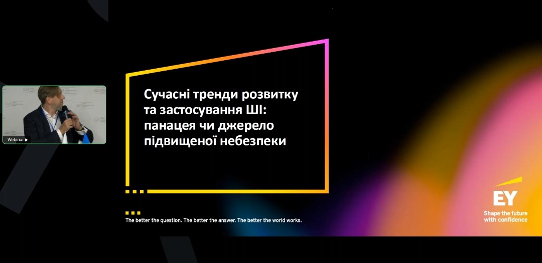 Актуальні аспекти використання штучного інтелекту в бізнесі розглянув Дмитро ЛАЗУЧЕНКОВ, партнер Digital Risk Consulting компанії EY в Україні, у доповіді «Сучасні тенденції розвитку та застосування ШІ: панацея чи джерело підвищеної небезпеки?», акцентувавши увагу на ризиках, комплаєнсі та інформаційній безпеці.