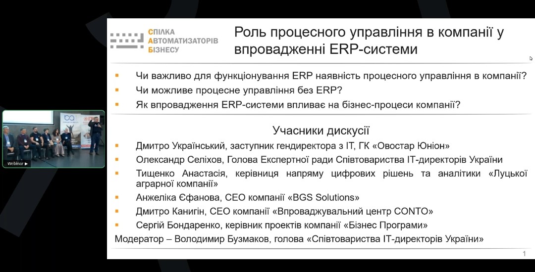 Завершальним етапом форуму став круглий стіл-дискусія щодо ролі процесного управління у впровадженні ERP-систем, під час якої учасники обговорили взаємозв’язок бізнес-процесів, цифрових рішень та організаційної зрілості компаній.