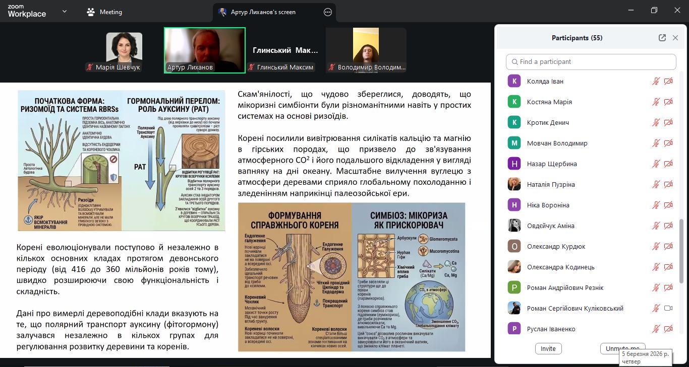 Візуальний супровід: Окремий акцент було зроблено на сучасній ботанічній ілюстрації. Креативний підхід до наочності допоміг студентам краще візуалізувати типи кореневих систем та їхні структурні особливості.