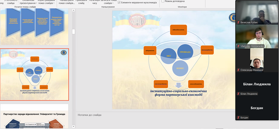 Завершення лекції відбулося у форматі відкритої дискусії, під час якої присутні мали змогу не лише уточнити окремі аспекти репрезентованого матеріалу, а й висловити власні міркування щодо розвитку партнерських екосистем сучасної освіти. Така взаємодія засвідчила високий рівень зацікавленості здобувачів освіти та їх готовність до осмислення складних управлінських і соціальних процесів.