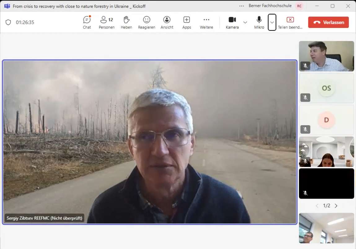 Під час стартової зустрічі Мар’яна Мельникович (BFH-HAFL), Крістіан Россет (Christian Rosset, BFH-HAFL), Олександр Сошенський (НУБіП України), Ганна Лобченко (WWF-України), Петро Дячук (ПНУ) та Леся Лойко (FORZA) представили короткі доповіді, у яких розповіли про концепцію проєкту та внесок своїх організацій у його реалізацію. Виступи були присвячені стратегічним цілям проекту, впровадження в Україні принципів наближеного до природи лісівництва, створення мережі демонстраційних ділянок (мартелоскопів), розробки освітніх ресурсів і онлайн-курсів для лісівників та студентів, а також налагодження міжнародного партнерства задля відновлення українських лісів після війни та підвищення їхньої стійкості до змін клімату.