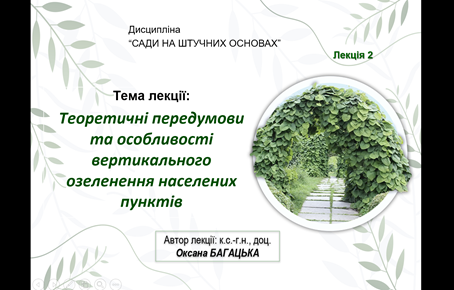 14 квітня 2026 року згідно плану відбулася відкрита лекція з дисципліни «Сади на штучних основах» для студентів ОС Магістр спеціальності 206 Садово-паркове господарство. Тема лекції актуальна в умовах сучасного урбанізму: «Теоретичні передумови та особливості вертикального озеленення населених пунктів».