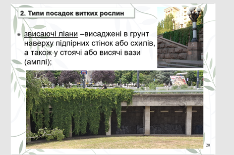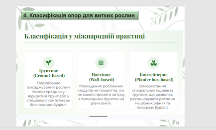 Під час лекції було наголошено, що вертикальне озеленення – це не лише естетичний прийом, а й дієвий спосіб покращення мікроклімату, зниження рівня шуму та очищення повітря в умовах щільної забудови.