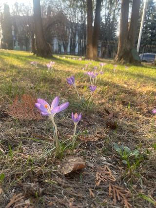 Цієї весни на території навчального корпусу №1 НУБіП України вперше розквітли крокуси та мускарі, які учасники гуртка «Сучасна флористика та фітодизайн» кафедри ландшафтної архітектури та фітодизайну ННІ лісового і садово-паркового господарства дбайливо висадили ще минулої осені. Для кожного з нас ці перші квіти є символом стійкості та віри у невідворотне квітуче майбутнє: якщо природа знаходить силу прорости крізь холодну землю, то і ми знайдемо силу вистояти та відродитися.