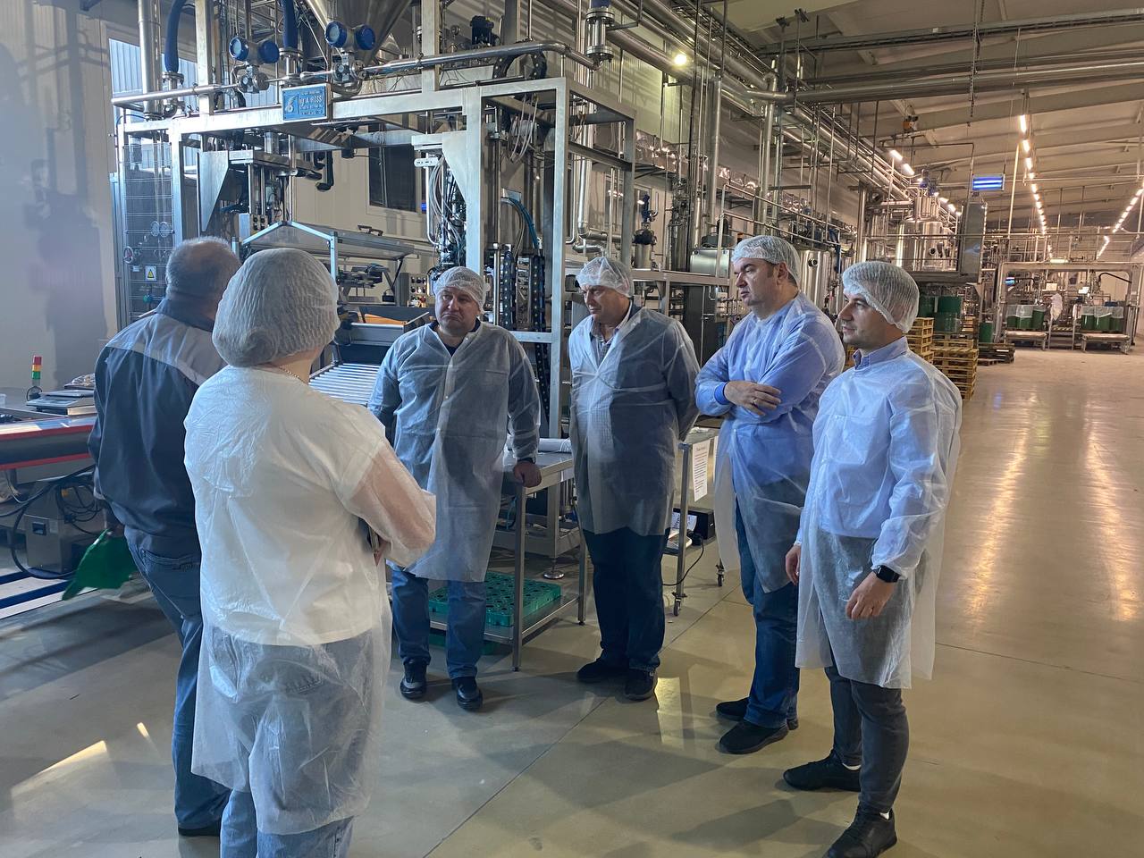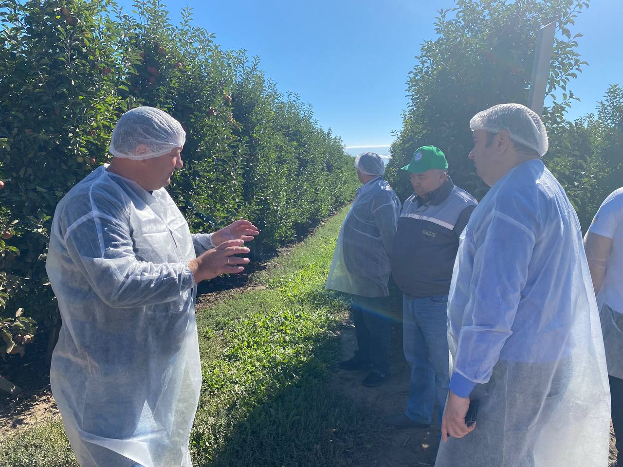 2. Фруктовий сад: інтенсивність європейського рівня. Наступною локацією візиту робочої групи стало серцем комплексу — фруктовий сад, де понад 1000 гектарів яблунь керуються за принципами «розумної» агрономії. Це територія європейської якості, де використовується комп’ютеризована система крапельного зрошення. Делегація була вражена масштабами зберігання — сучасні холодильні комплекси (до 26 тис. тонн) використовують інженерну думку для збереження свіжості плодів. Наявність власних цехів глибокої переробки дозволяє студентам вивчати повний цикл: від плодового саджанця до високоякісного соку чи чипсів.