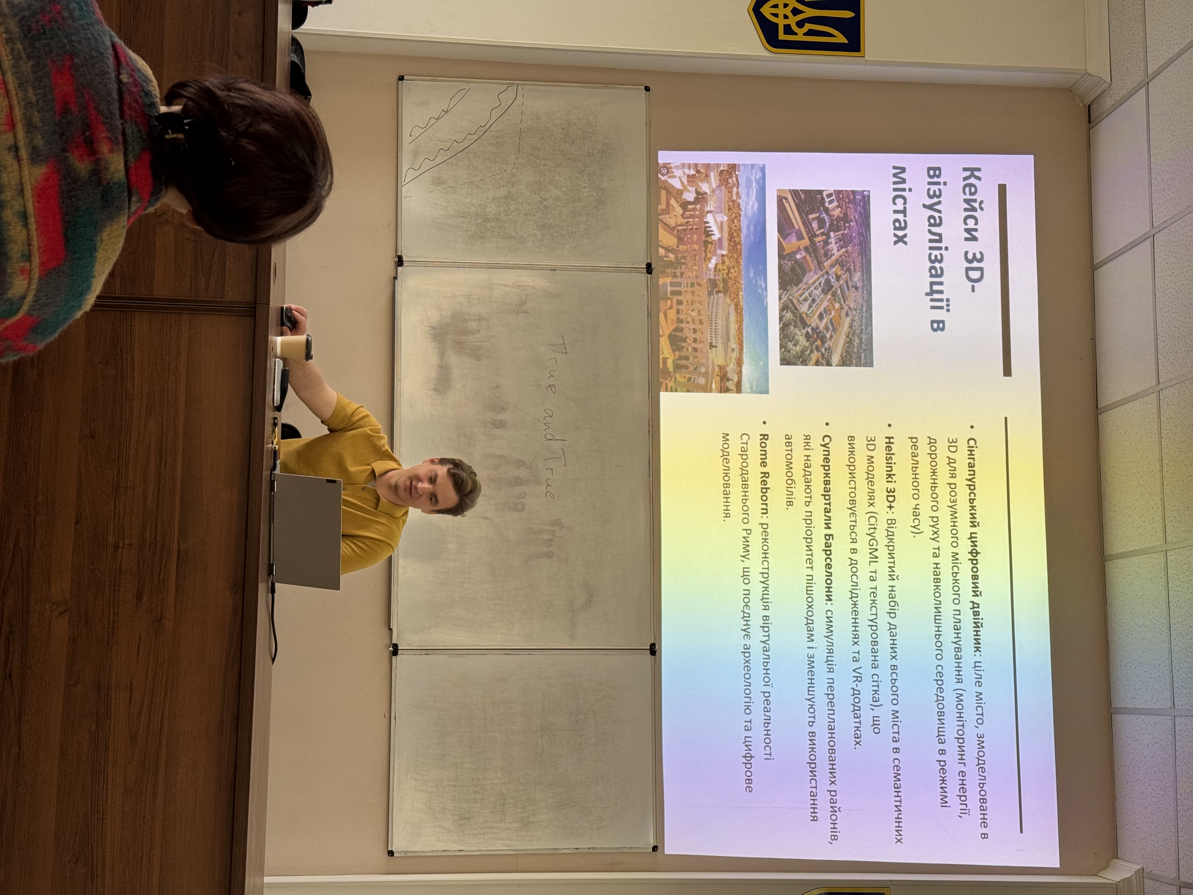 У лекції також були представлені міжнародні кейси, які особливо яскраво демонструють практичну цінність 3D-моделювання для урбанізації. Серед них цифровий двійник Сінгапуру як приклад комплексного використання 3D-даних для управління містом, відкриті 3D-дані Гельсінкі як приклад доступної урбаністичної інформаційної платформи, а також Rome Reborn - масштабний проєкт цифрової реконструкції історичного Риму, що поєднує культурну спадщину, археологію та сучасні технології візуалізації. На основі цих прикладів було показано, що 3D-міські моделі можуть використовуватися як для аналітики і планування майбутніх змін, так і для реконструкції втрачених історичних середовищ, освітніх цілей і громадської комунікації.
