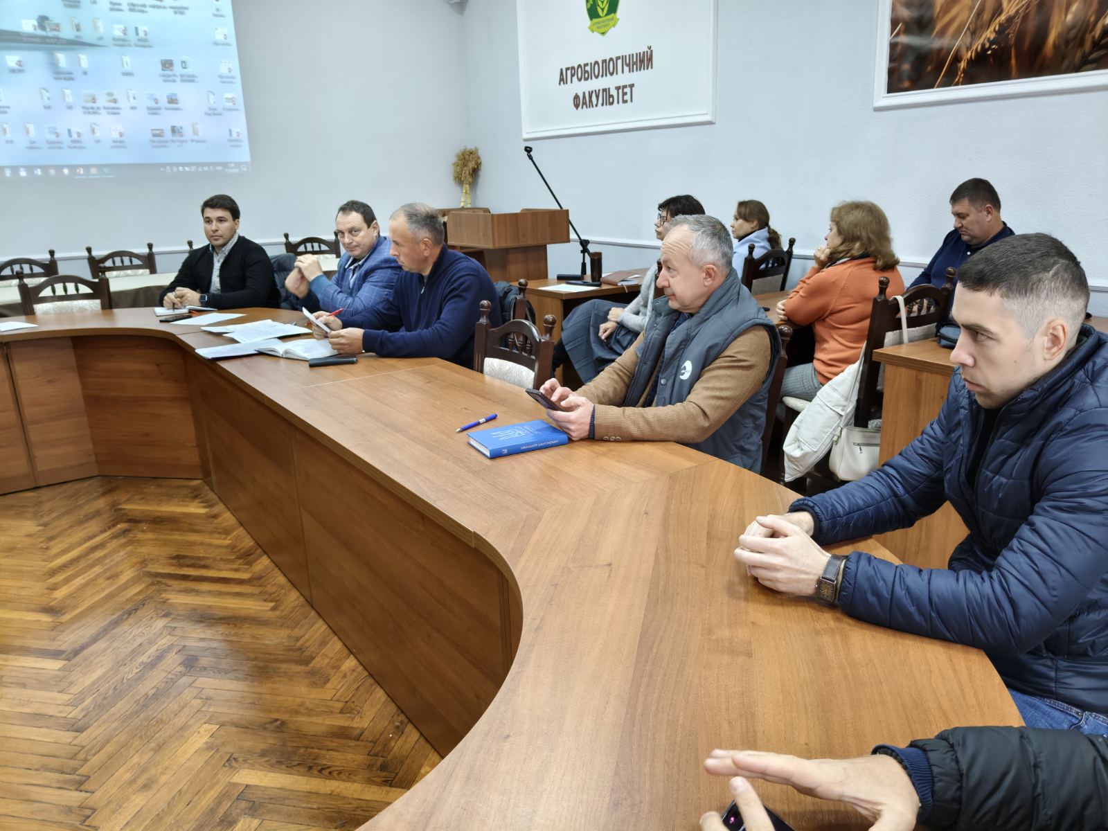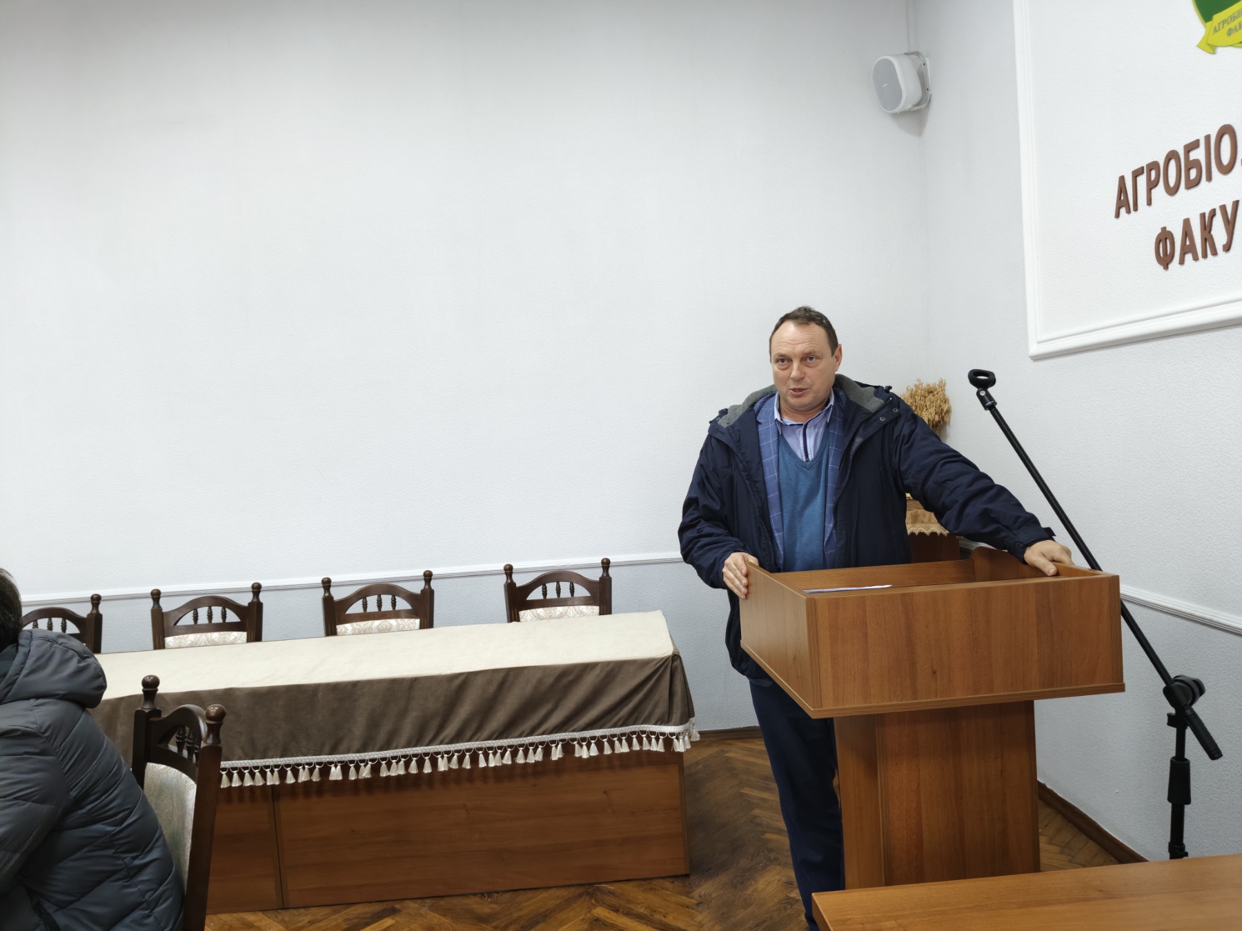 Декан Агробіологічного факультету Віталій Коваленко розпочав засідання вченої ради. Під час доповіді акцентував увагу про посилення роботи кафедр факультету у напрямку профорієнтації, заключення договорів зі школами.