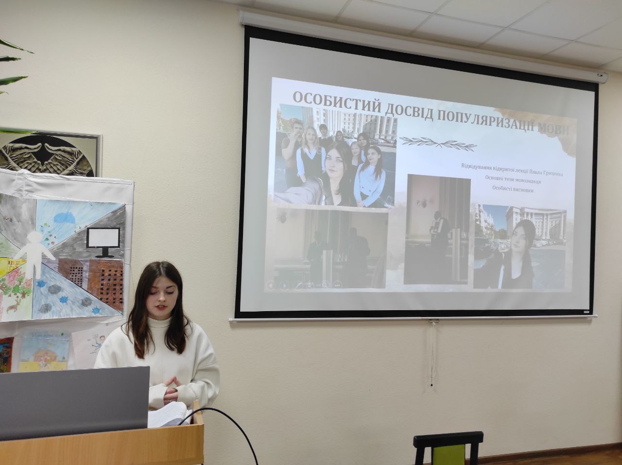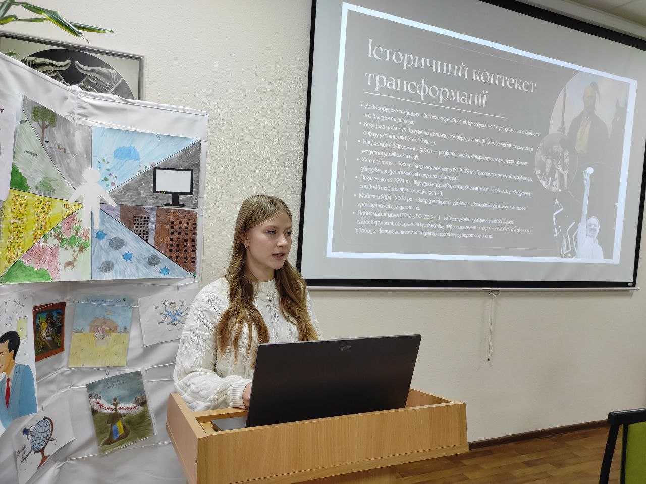 ЙОСИПЕНКО Анастасія, студентка 1 курсу гуманітарно-педагогічного факультету спеціальності «Міжнародні відносини», виступила з доповіддю «Хто ми сьогодні? Українська ідентичність у пошуках гармонії». Вона розглянула сучасні процеси самовизначення українців, окреслила зміни у ціннісних орієнтирах молодого покоління та порушила питання гармонізації національних традицій із європейськими підходами до формування суспільної ідентичності.