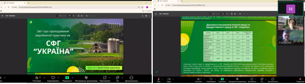 - Дарія Басюк проходила практику в ТОВ «Агрокомплекс Зелена долина» Тульчинського району Вінницької області;