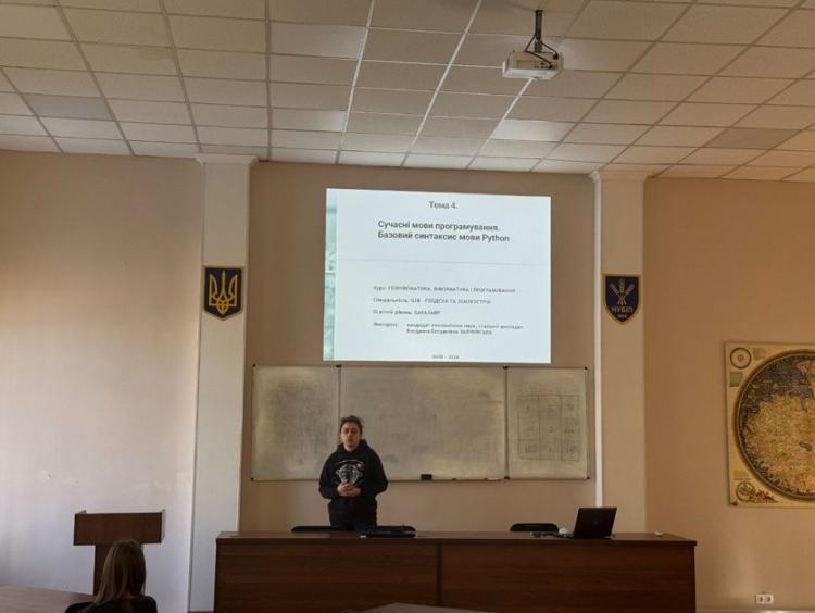 Відповідно до Графіку проведення відкритих лекцій 17.03.2026, на 1 парі, з 08:30 до 09:50, в 112 ауд. з дисципліни "Геоінформатика, інформатика і програмування. Ч.2" для студентів 1-го курсу відбулася відкрита лекція к.е.н., ст. викладача кафедри геоінформатики і аерокосмічних досліджень Землі Заячківської Богданни Богданівни на тему "Сучасні мови програмування. Базовий синтаксис мови Python". Дякуємо всім хто був присутній!