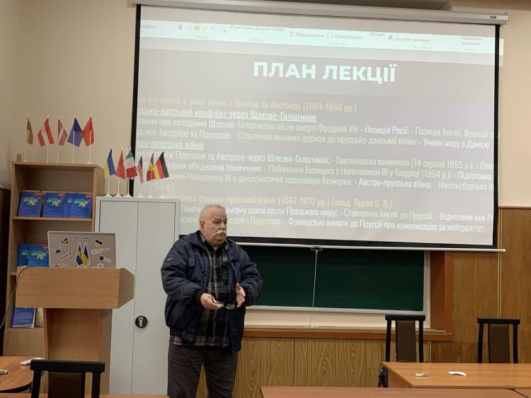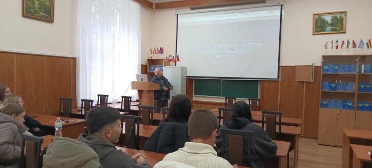 Черговим таким кроком для доцента кафедри міжнародних відносин і суспільних наук, канд. іст. наук АСАТУРОВА С.К. стала його відкрита лекція 14 жовтня для бакалаврів спеціальності «Міжнародні відносини» з ОК «Історія міжнародних відносин» на планову навчальну тему «Зовнішньополітична стратегія Прусії 60-70-х років ХІХ ст.» «Інформаційно-дипломатична підготовка О. ф. Бісмарком об’єднання Німеччини навколо Прусії».