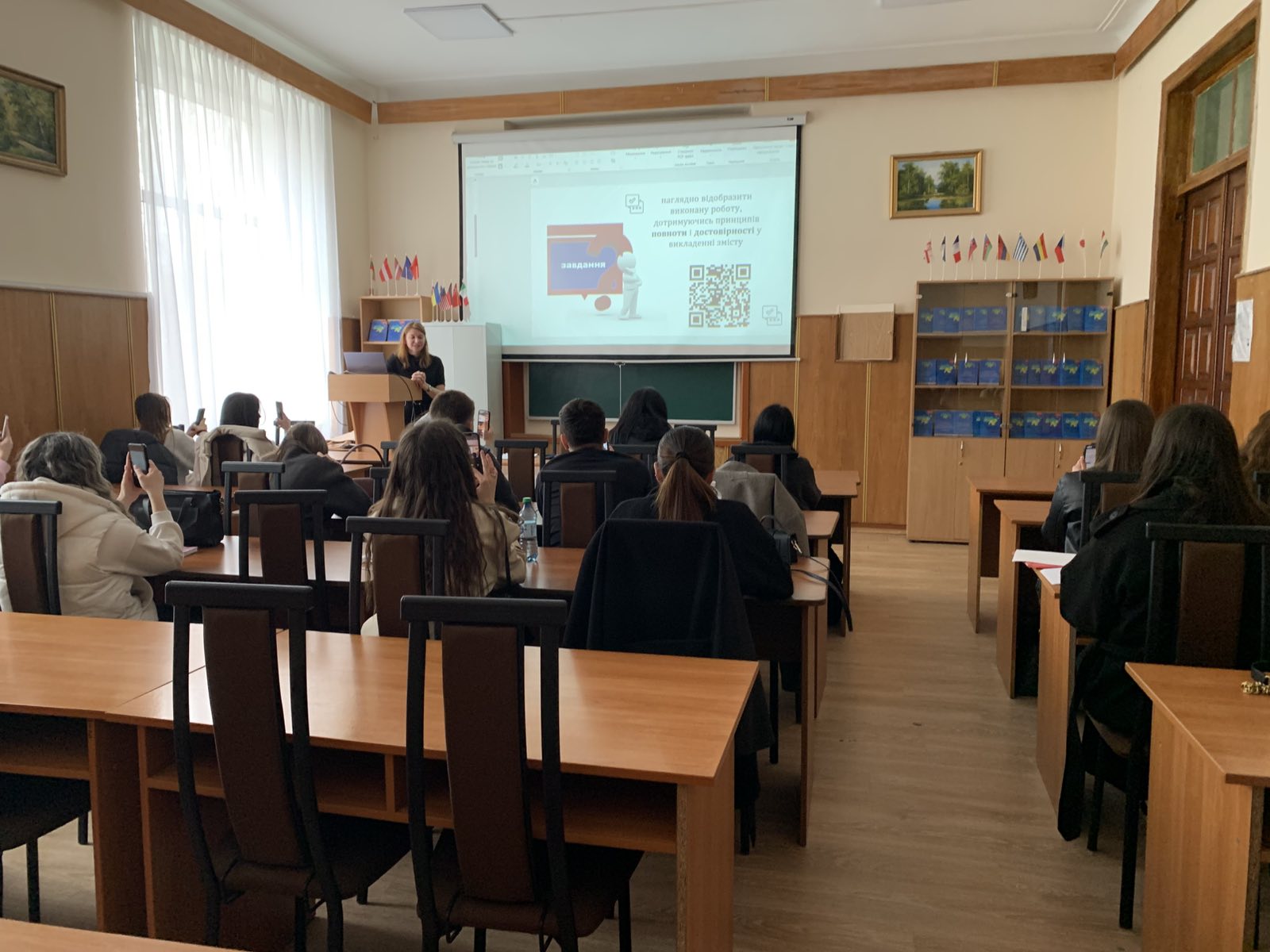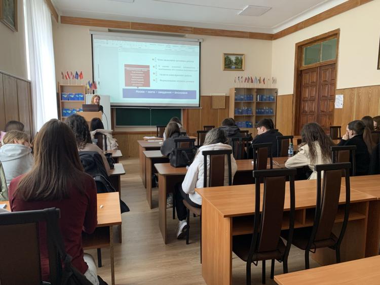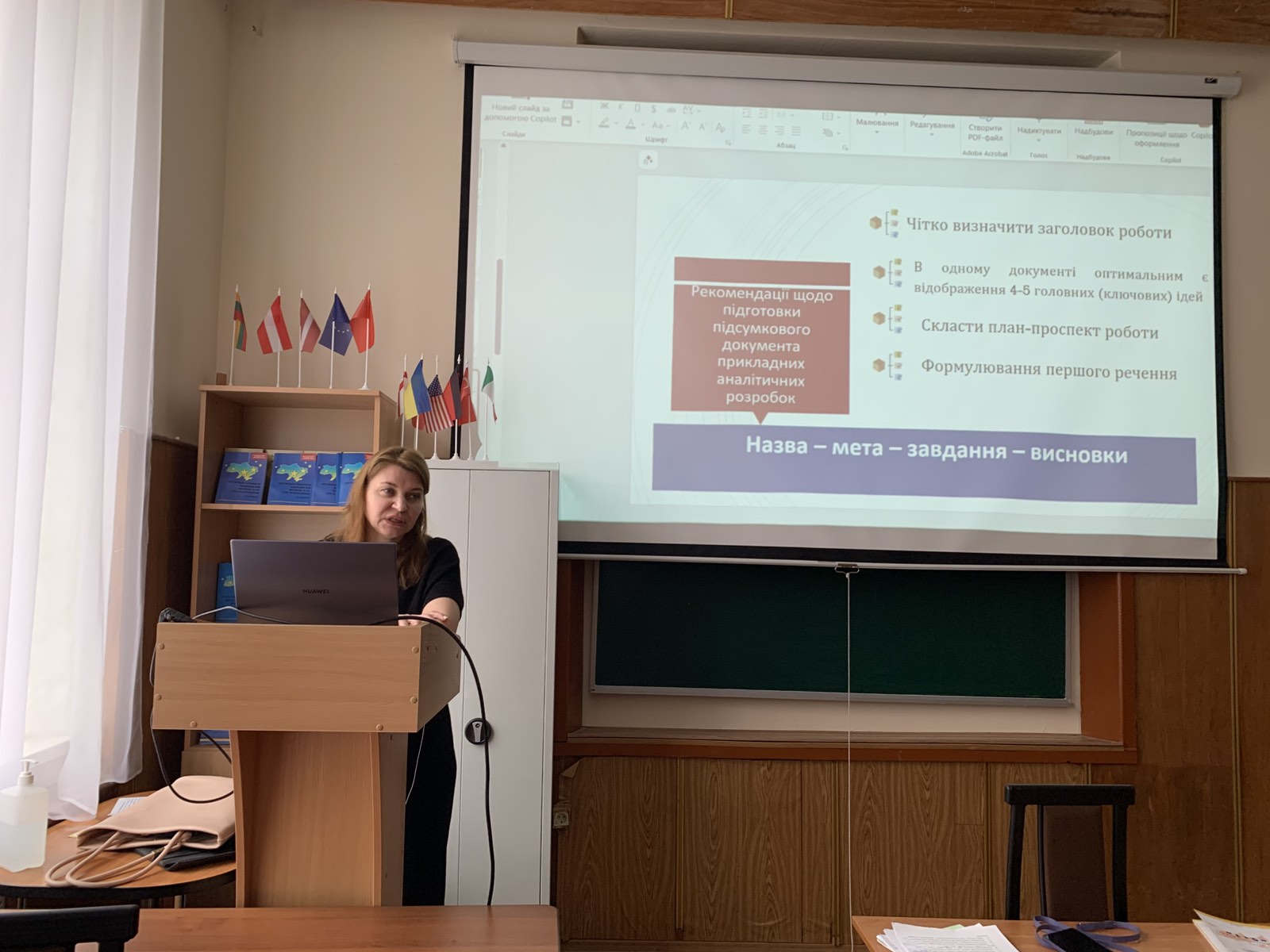 У межах заняття також було сформульовано практичне завдання – підготовка інформаційно-аналітичної записки на основі конкретного офіційного документа з обов’язковим включенням аналітичної оцінки, висновків і прогнозних положень. Було детально роз’яснено вимоги до виконання роботи, критерії оцінювання та типові помилки, яких слід уникати, зокрема описовість викладу, відсутність аналітичної складової та нечіткість рекомендацій.