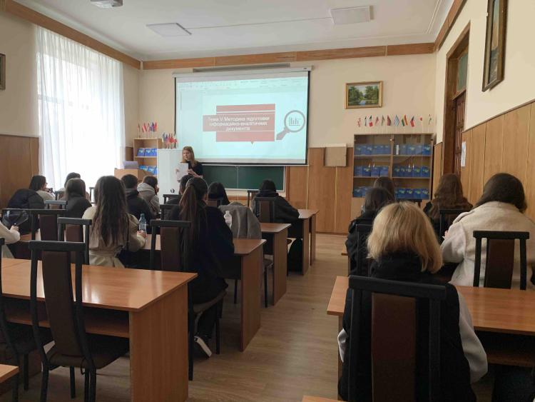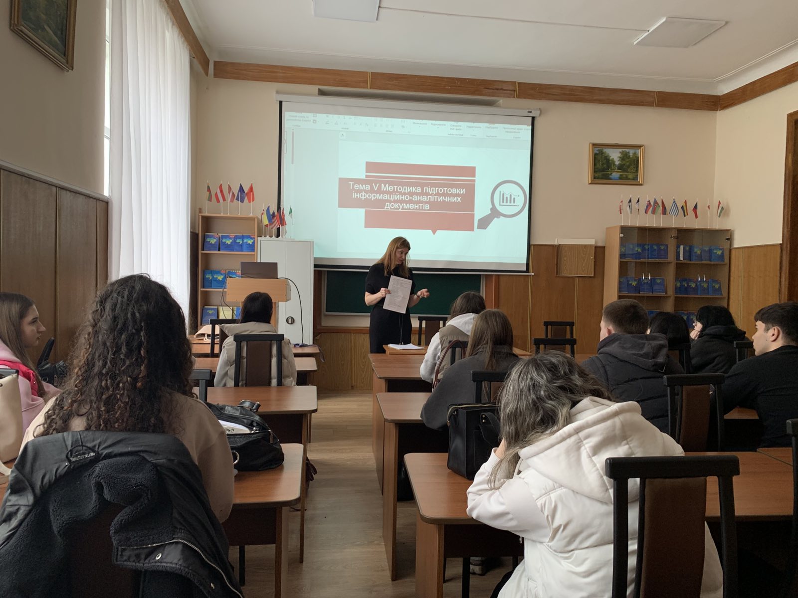 31 березня 2026 року у межах навчального процесу для студентів 2 курсу спеціальності «Міжнародні відносини» було проведено відкриту лекцію д.іст.н., професора кафедри міжнародних відносин і суспільних наук Оксани Силки з навчальної дисципліни «Інформаційно-аналітична діяльність у міжнародних відносин» на тему «Методика підготовки інформаційно-аналітичних документів». Захід мав на меті формування у здобувачів освіти практичних навичок роботи з аналітичними матеріалами, розвитку критичного мислення та здатності до інтерпретації офіційних документів у сфері міжнародних відносин.