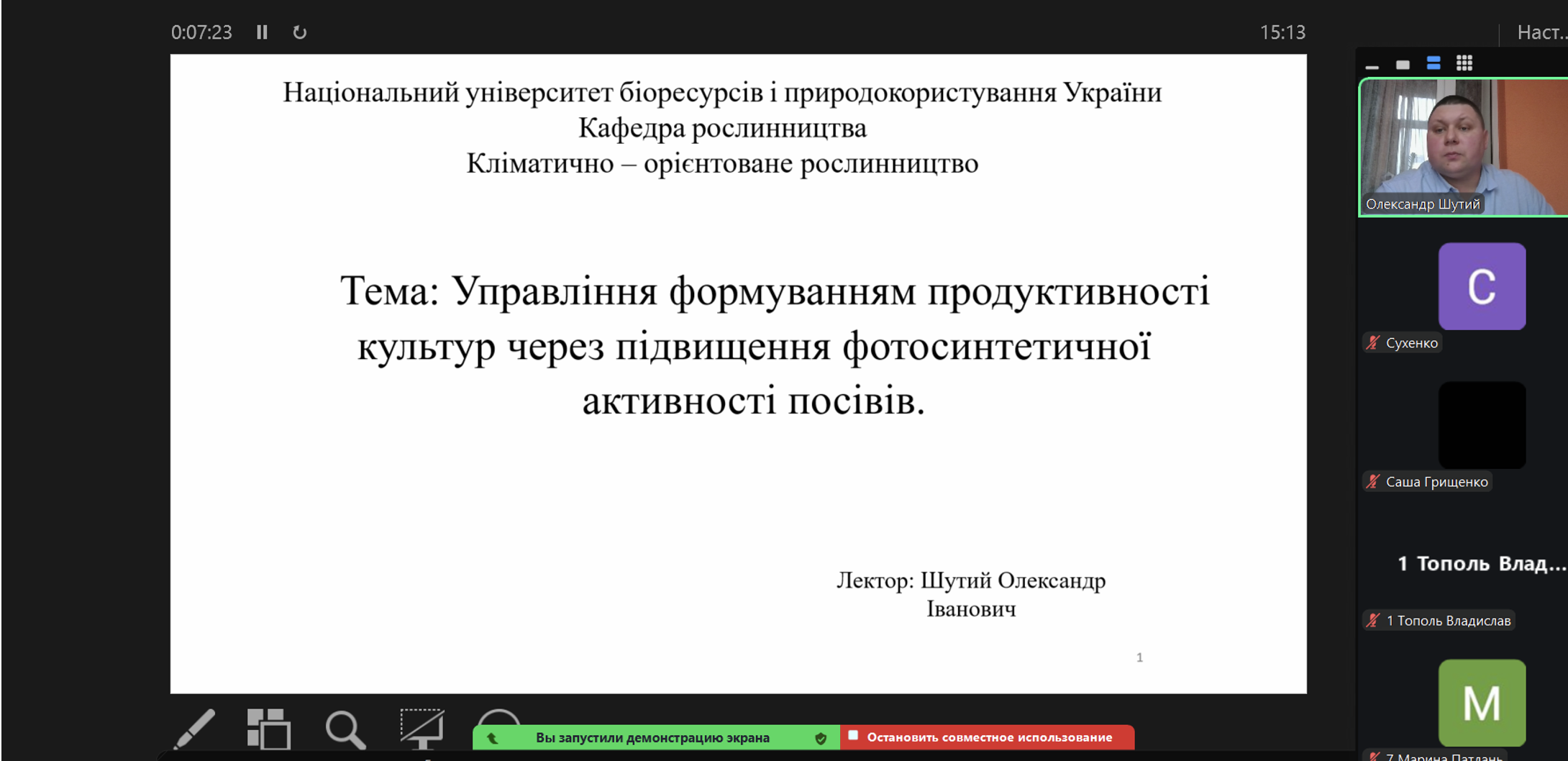 Відкрита лекція. «Управління формуванням продуктивності культур через підвищення фотосинтетичної активності посівів».