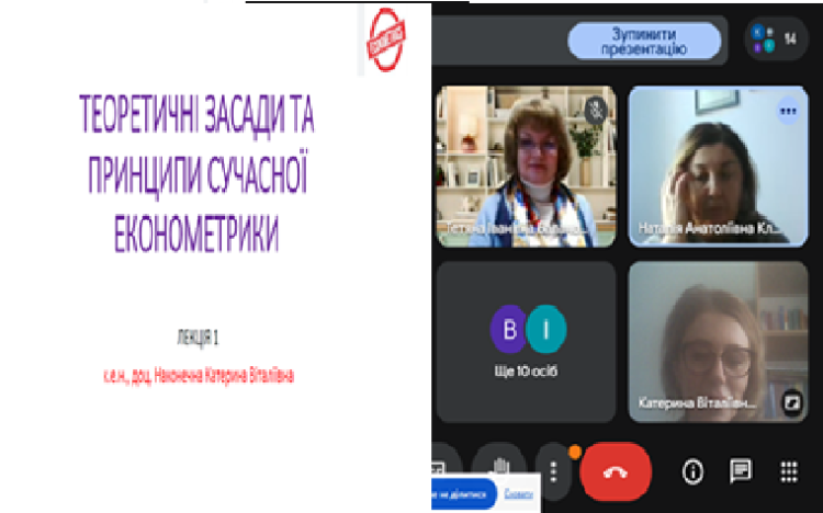 Лекцію на тему «Теоретичні засади та принципи сучасної економетрики» провела викладач кафедри економічної кібернетики к.е.н., доцент Наконечна Катерина Віталіївна.