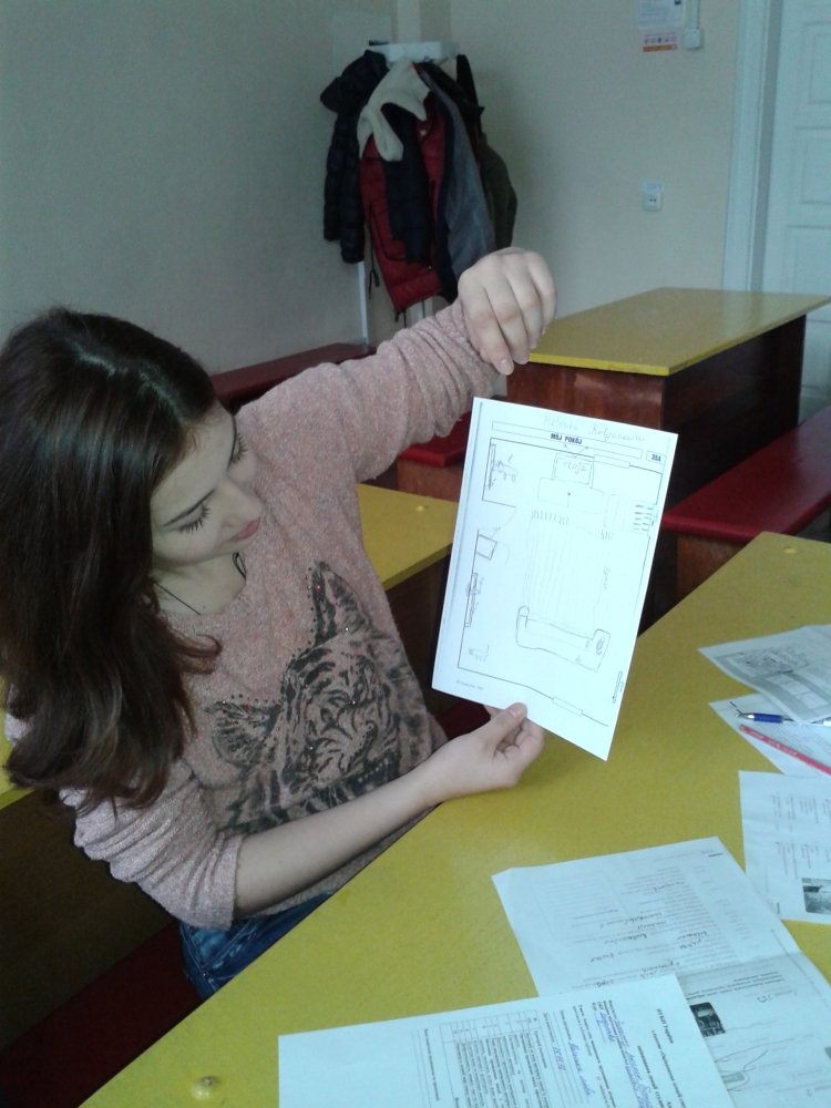 Використовуючи мультимедійне обладнання та роздатковий матеріал, а також елементи гри «Umebluj mieszkanie», студенти мали можливість не тільки вивчити нові слова і словосполучення, а й продемонструвати творчий підхід та дизайнерські якості. Низка завдань з аудіювання поповнила словниковий запас студентів, а вироблення навичок побудови діалогів для резервування готельних номерів, написання оголошень щодо орендування помешкання безперечно стануть практичним досвідом у майбутньому.