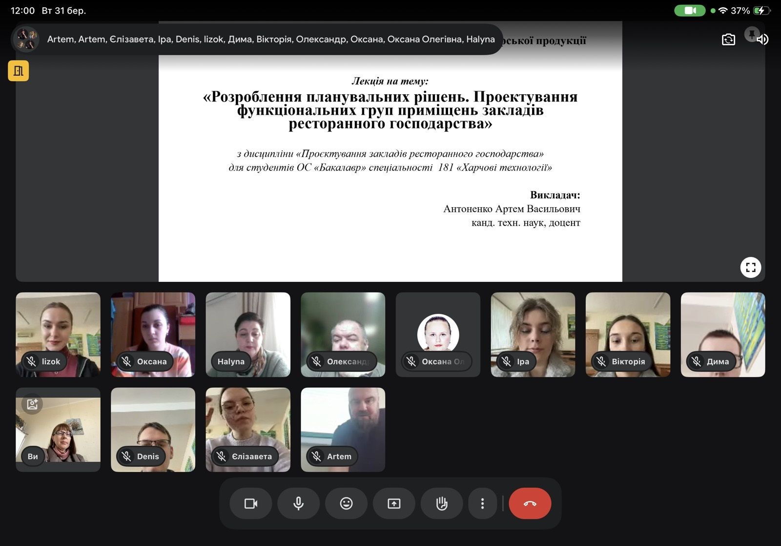 31 березня 2026 року відбулося відкрите заняття на тему «Розроблення планувальних рішень. Проектування функціональних груп приміщень закладів ресторанного господарства», яке провів кандидат технічних наук, доцент кафедри Антоненко Артем Васильович.
