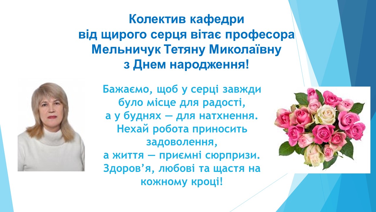 Вітаємо з Днем народження професора Мельничук Тетяну Миколаївну!
