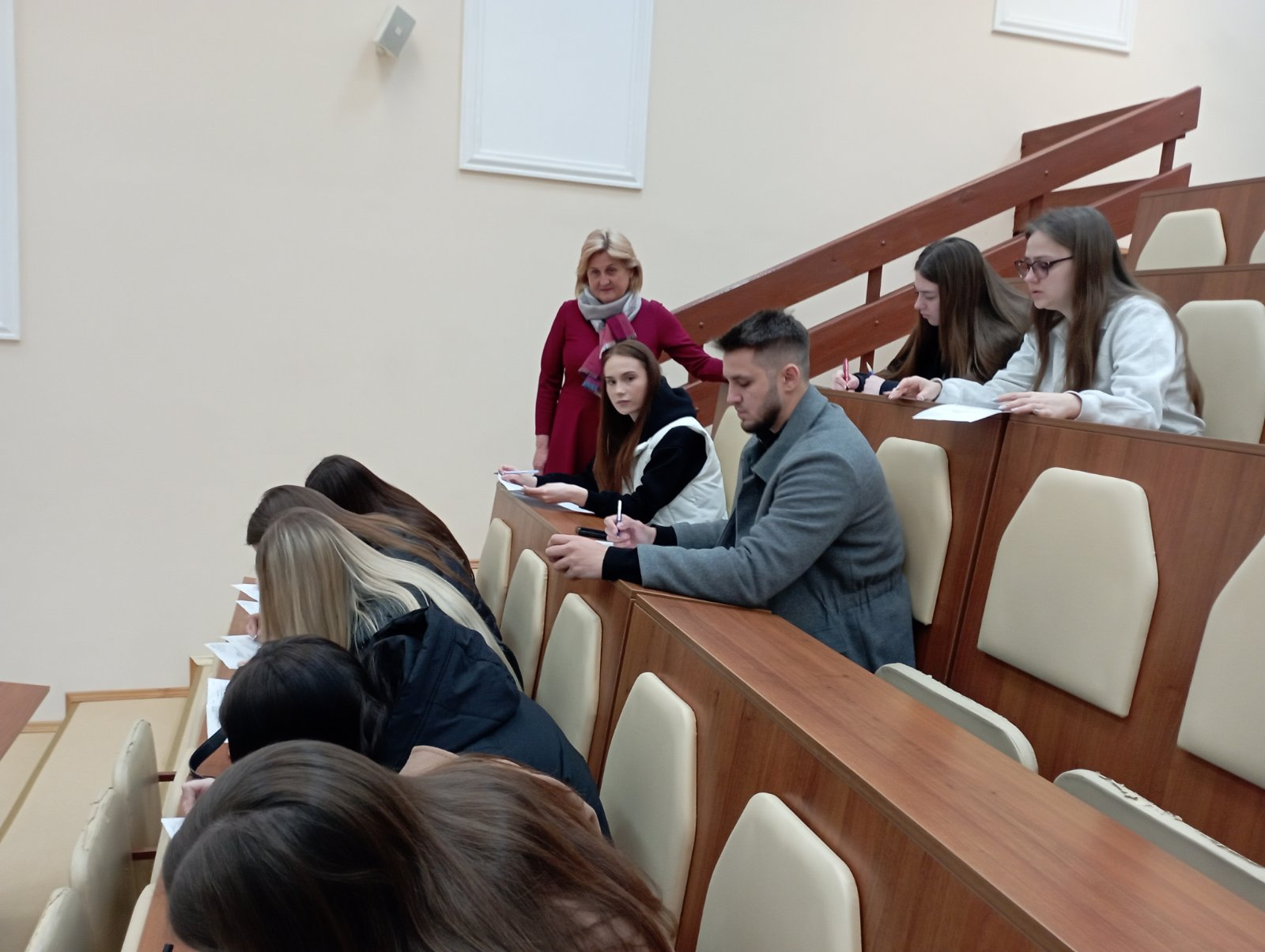 Відкриваючи олімпіаду з навчальної дисципліни «Зовнішньоекономічна діяльність підприємства» голова комісії, доцент кафедри адміністративного менеджменту та зовнішньоекономічної діяльності Лариса ДІБРОВА привітала учасників та побажала реалізувати отримані знання при розкритті олімпіадних завдань. До вітальних слів доєдналися члени комісії - д.е.н., професор кафедри адміністративного менеджменту та зовнішньоекономічної діяльності Тетяна МОСТЕНСЬКА, к.е.н., доценти кафедри адміністративного менеджменту та зовнішньоекономічної діяльності Олександр ФАЙЧУК, Альона ТЮРІНА та Іван МІЩЕНКО, які побажали учасникам продемонструвати свої знання та навички, що використовуються для прийняття ефективних управлінських рішень при здійсненні підприємством зовнішньоекономічної діяльності.