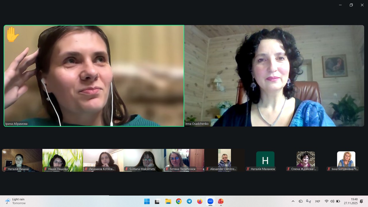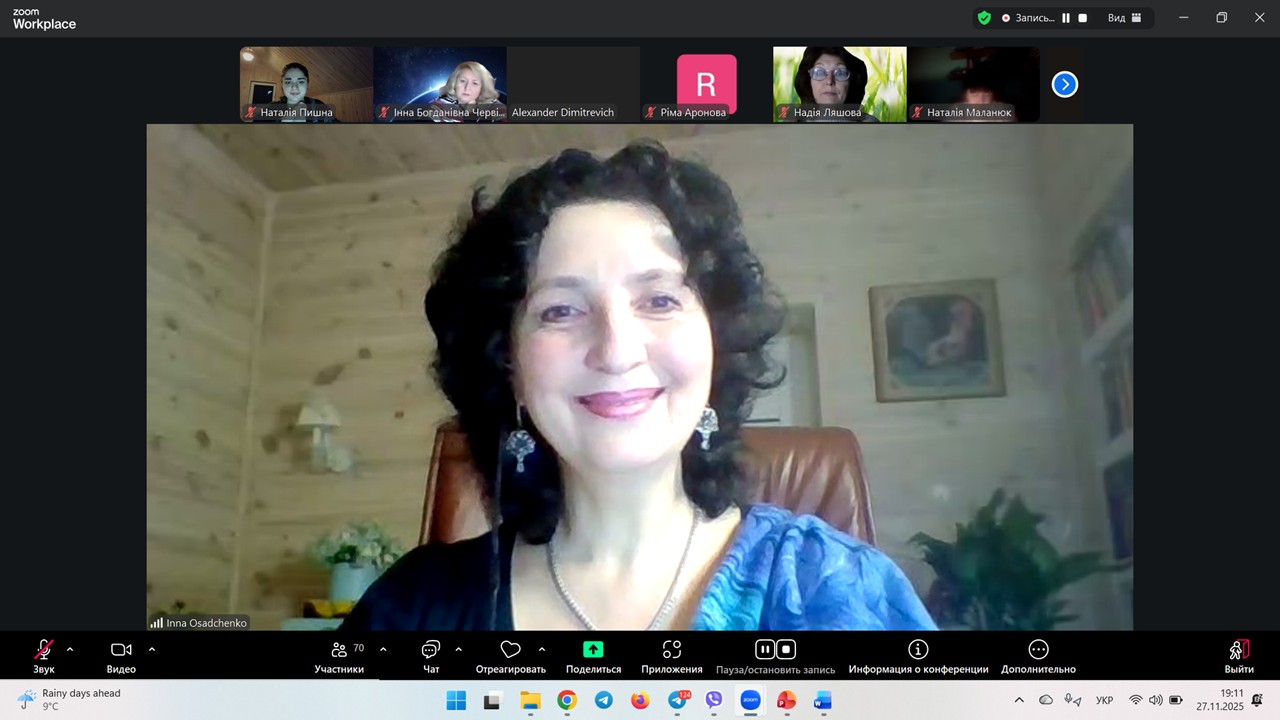 Інна ОСАДЧЕНКО, маючи неабиякий досвід у проведенні подібних заходів, сприяла позитивно-мотивованій дискусії, підтримуючи професійно-дотичними ремарками, оголошуючи запитання із чату, модеруючи перебіг заходу.