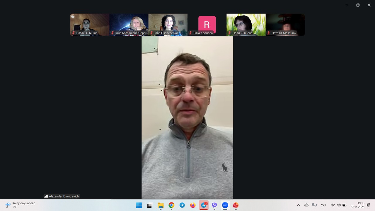 Захід із звичайного вебінару перетворився на живу дискусію формату подкасту: Олександр ДІМИТРЕВИЧ – українець, який вже багато років живе у Великобританії, однак із перших воєнних днів в Україні активно допомагає та навчає психологів і не тільки, власне, ініціював цей захід. Виступ пана Олександра у стінах, хоч і онлайн, нашого університету – вже подія (не зашкодили й технічні перешкоди під час виступів). Він вразив своєю професійною компетентністю, реальними кейсами психологічної допомоги, пов’язаної із штучним інтелектом, харизматичністю, прикладом неймовірного внутрішнього спокою, почережно, даючи відповіді на запитання: