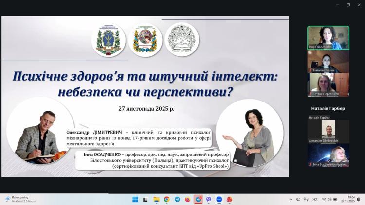 Всеукраїнський (із міжнародною участю) вебінар-дискусія «Психічне здоров’я та штучний інтелект: небезпека чи перспективи?»