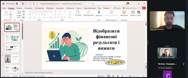 Здобувач PhD Мирослав МОЛДОВАН у доповіді «Визначити фінансові результати і вижити» поєднав практичний досвід фінансового управління з особистісними викликами роботи в умовах невизначеності.