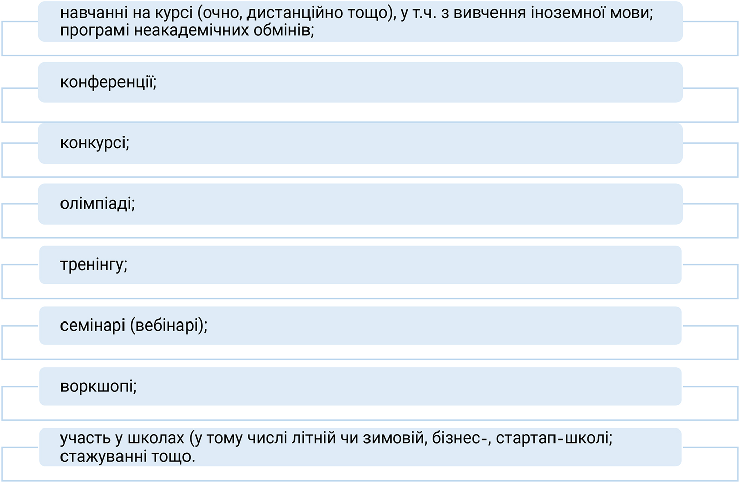 За раніше висловленими побажаннями студентів надати їм роз’яснення щодо оцінювання рівня знань здобувачів вищої освіти, здобутих за програмами неформальної освіти, висвітлено ці питання. Вказано на нормативно-правові документи, які регламентують процедуру визнання результатів, отриманих у неформальній освіті: стаття 8. Закону України “Про освіту” (2017 р.); Порядок визнання у вищій та фаховій передвищій освіті результатів навчання, здобутих шляхом неформальної та/або інформальної освіти, затверджений Наказом Міністерства освіти i науки України 08.02.2022 № 130, зареєстрований в Міністерстві юстиції України 16.03.2022 № 328/37664 та відповідних офіційних документах НУБіП України.