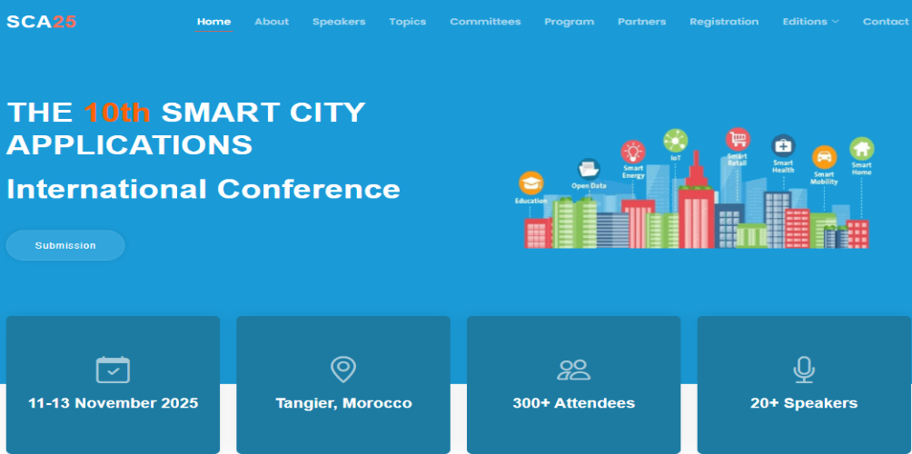 З 10 по 12 листопада 2025 року у місті Тенжер, Марокко відбулася 10-та Міжнародна конференція SCA2025 - «SMART CITY APPLICATIONS» з міждисциплінарних питань застосування розумних міст SMART CITY, участь у якій прийняли понад 300 учасників з різних країни світу, а саме: США, Португалія, Велика Британія, Канада, Мароко, України, Малазія, Італія, Іспанія, Німеччина, Польща, Австрія, Туніс, Інді, Словенія та інших. Робоча мова конференції – англійська.