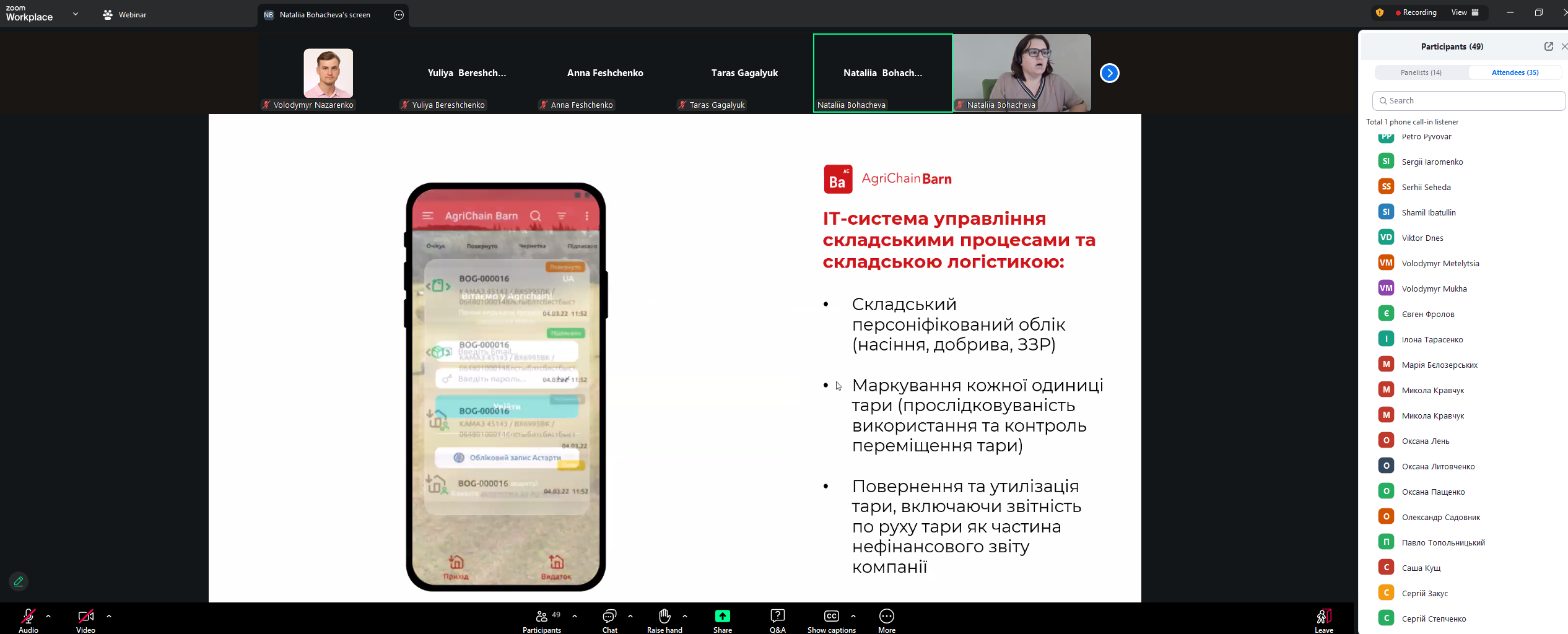 У програмі були презентації експертів, які представляють наукові кола, агробізнес та кампанії цифрових технологій, а саме: Назар МАЛИНЯК (Smart Farming), Юлія БЕРЕЩЕНКО та Наталія БОГАЧОВА (Astarta Holding) та Володимир НАЗАРЕНКО (НУБіП України).